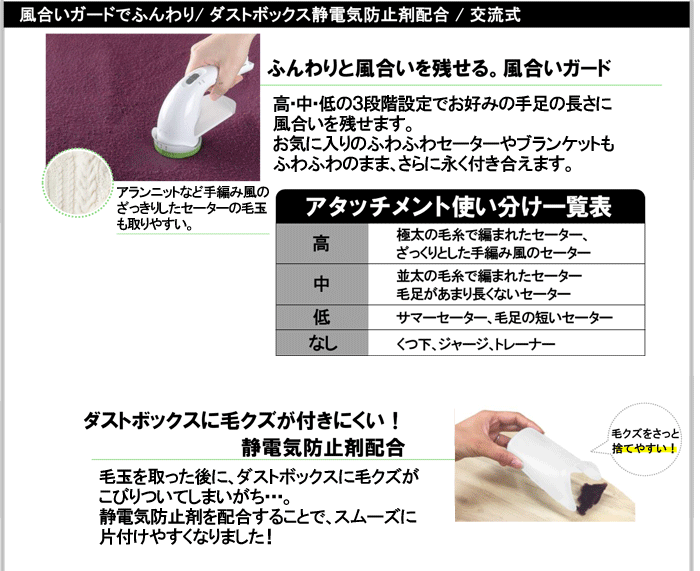 【楽天スーパーSALE!店内全品ポイント5倍 12/04〜12/11 01:59迄】毛玉取り器 毛玉クリーナー テスコム 充電式 交流式 AC電源コンセント 大型カッター刃 風合いガード