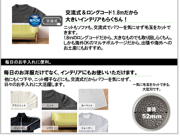 【楽天スーパーSALE!店内全品ポイント5倍 12/04〜12/11 01:59迄】毛玉取り器 毛玉クリーナー テスコム 52mm大型カッター刃 風合いガード 乾電池式